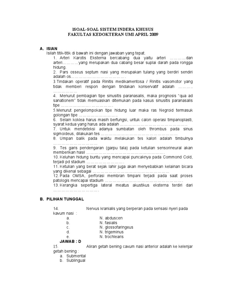 Contoh Soal Dan Jawaban Tentang Hidung Sebagai Alat Indra Pencium Ilmusosial Id