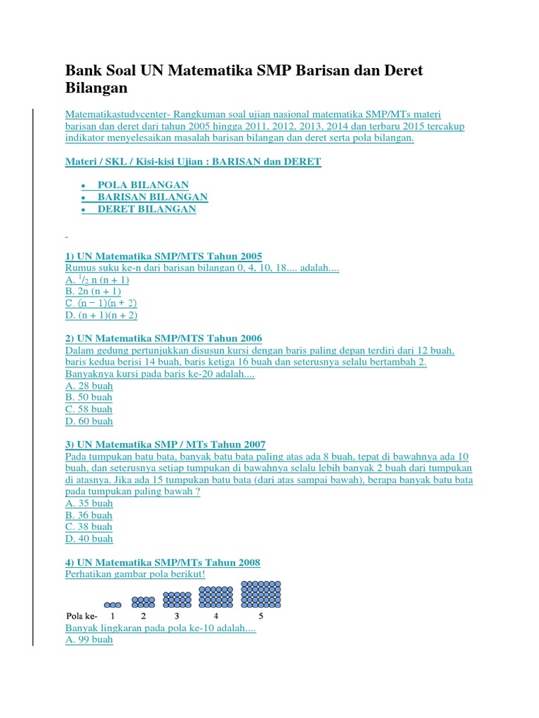 Bank Soal Un Matematika Smp Barisan Dan Deret Bilangan