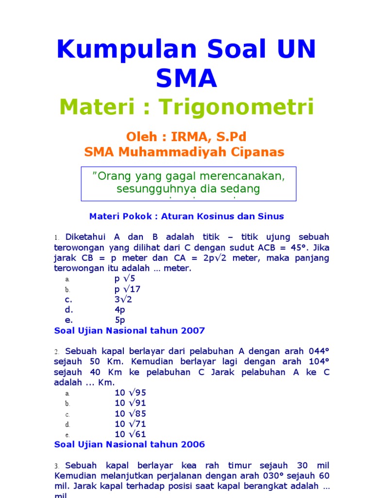 Materi Trigonometri Kumpulan Soal Un Sma