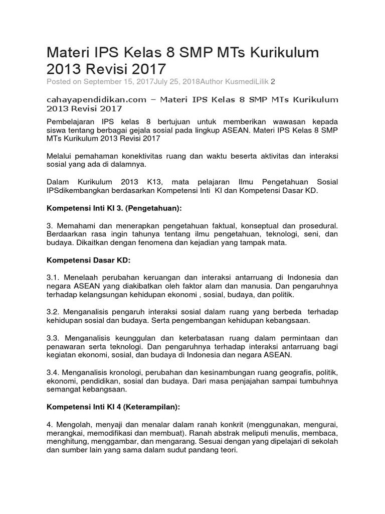 Materi Ips Kelas 8 Semester 1 Kurikulum 2013 Revisi 2017 Rismax